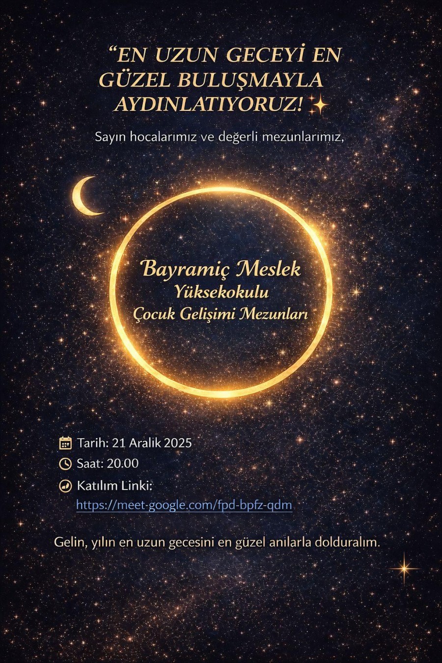 21 Aralık Yılın En Uzun Gecesinde Çocuk Gelişimi Bölümü Mezun Buluşması Gerçekleştirildi