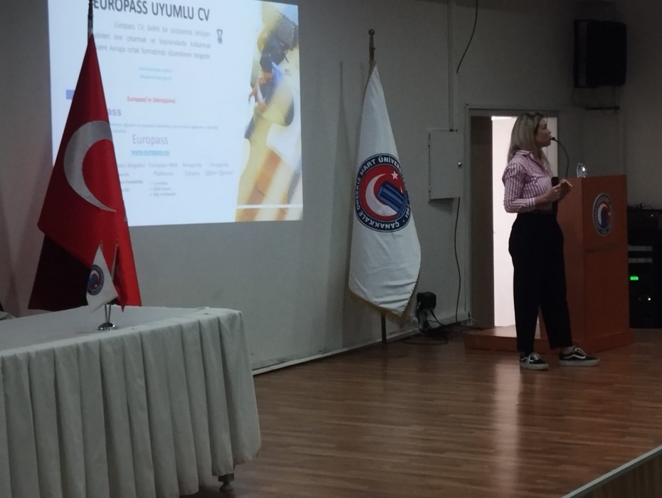 Çanakkale Çalışma ve İş Kurumu İl Müdürlüğü’nde iş ve meslek danışmanı olarak görev yapan Eylem Karaca tarafından, "İşkur tanıtımı ve faliyetleri, İşkur'a kayıt olma ve İşkur vasıtasıyla iş arama, Europass CV, Yetenek Kapısı, staj portalı ve mesleki yönelim test bataryası konularında öğrencilerimizin yoğun katılım gösterdiği interaktif bir sunum yapılmıştır. Sunumda öğrencilere kurumun hizmetleri, iş başvuruları, danışmanlık süreçleri ve kariyer destekleri hakkında bilgiler verilmiştir.